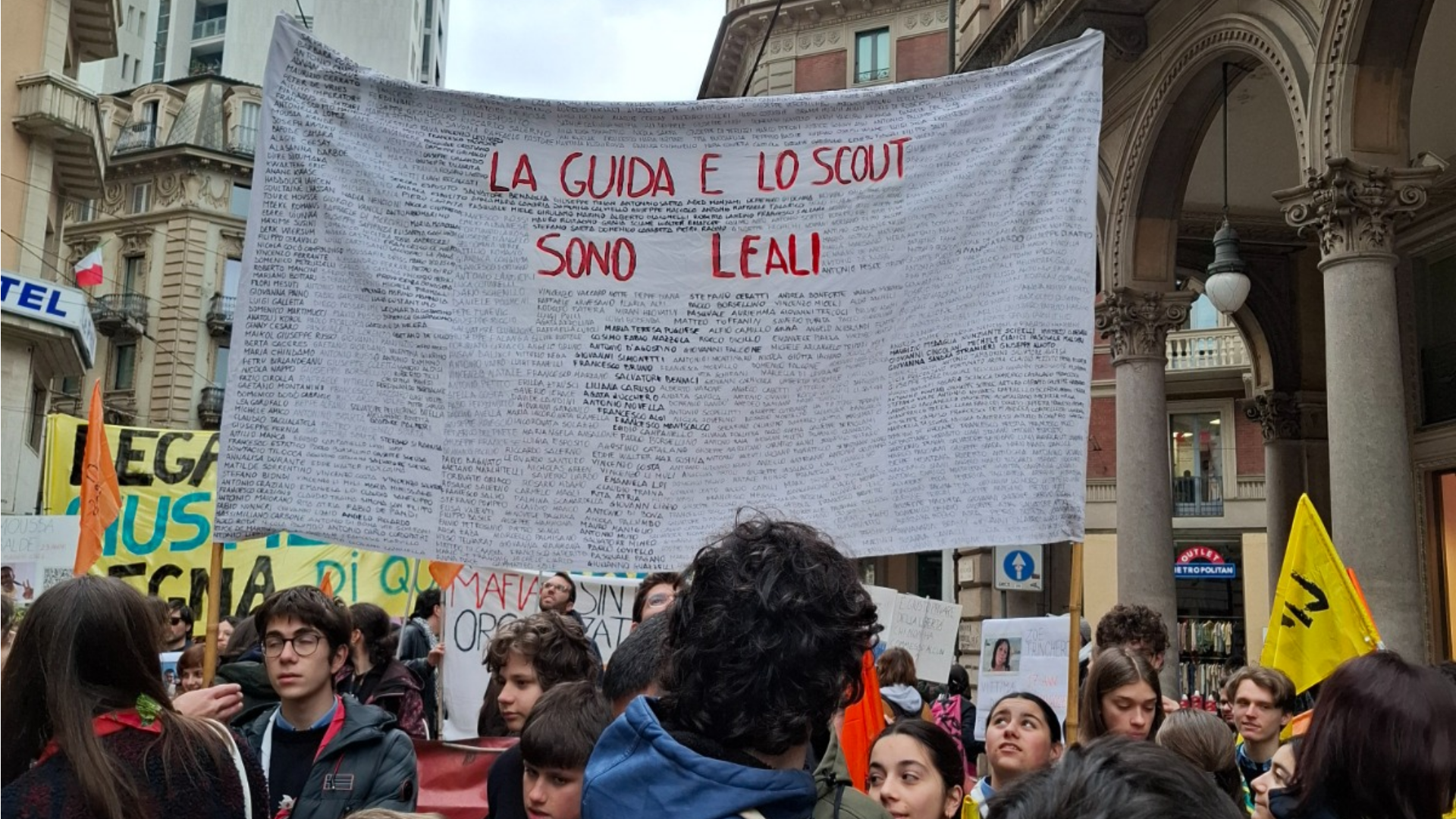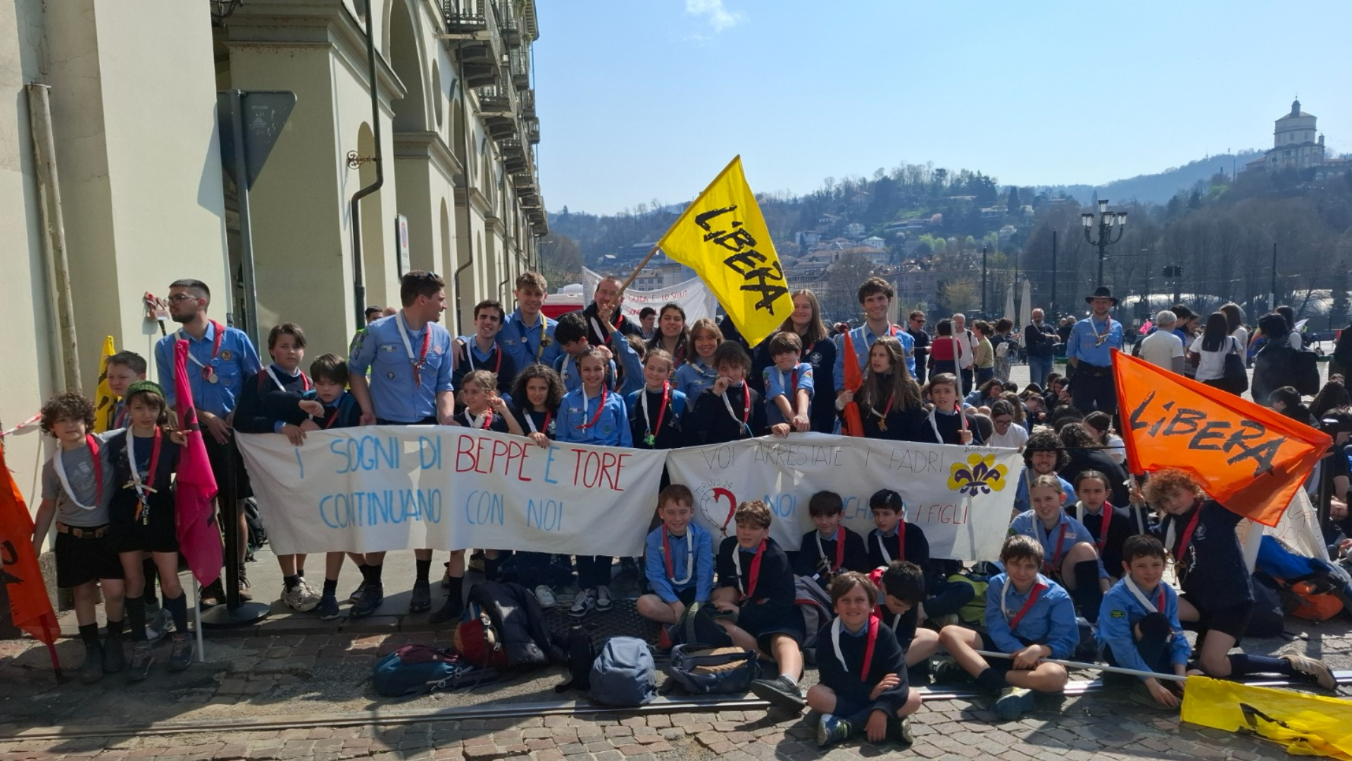 Sabato 21 marzo è stata una giornata diversa dal solito per molti ragazzi e ragazze del nostro gruppo scout, una di quelle giornate che ci auguriamo portino per sempre nel cuore. Per le strade di Torino c’erano lupetti e lupette che hanno cantato portando striscioni, rover e scolte intente a sventolare una bandiera della pace lunga più di dieci metri e guide ed esploratori impegnati a sorreggere un lenzuolo con scritto sopra i nomi di oltre 1100 persone. Ma cosa ci ha spinti ad un’attività così insolita, o almeno più insolita rispetto alle nostre attività domenicali?